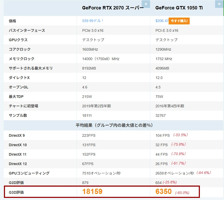 最近では3Dゲームのほうが多いので、3DGで比較したほうがわかりやすいです。なので今回はG3Dスコアで比較して見ます。
