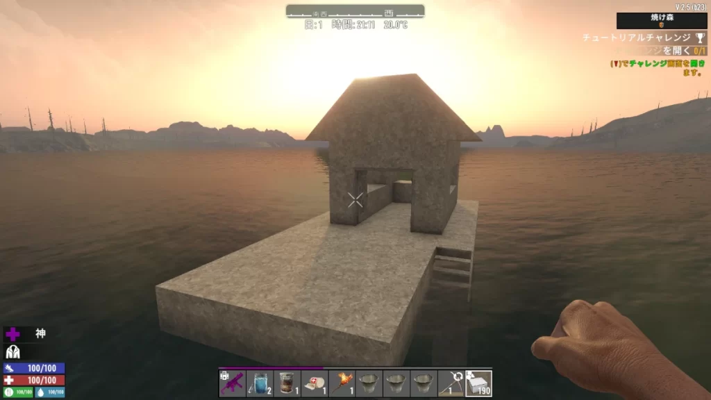 水上なので建築が少し手間ですが、7DTDには面白いブロックがたくさんあるので、アイデア次第では水上に浮かんでいるように見える家や、ビルなんてものも作れそうですね。