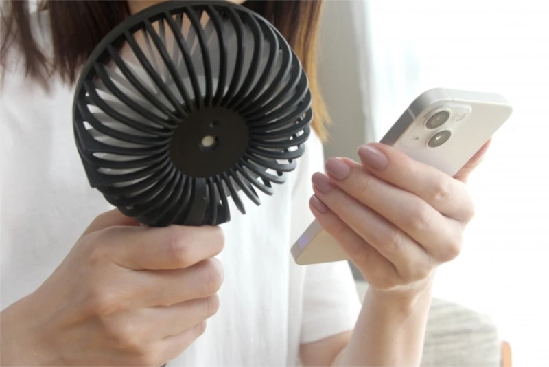 スマホに取り付ける送風ファンを現状持っていない場合は、手持ちの送風ファンなどでもいいので、風を当てると緩やかにスマホ本体の温度を下げて冷却してくれます。